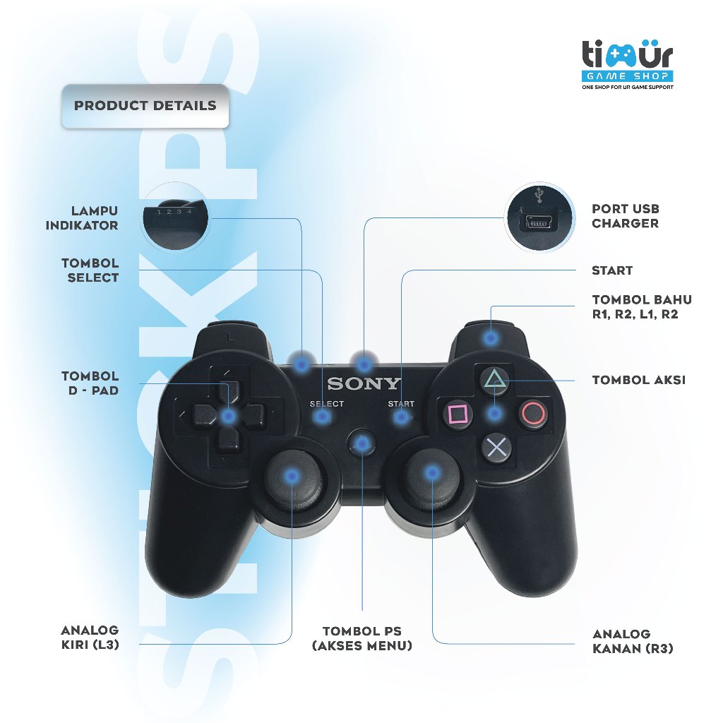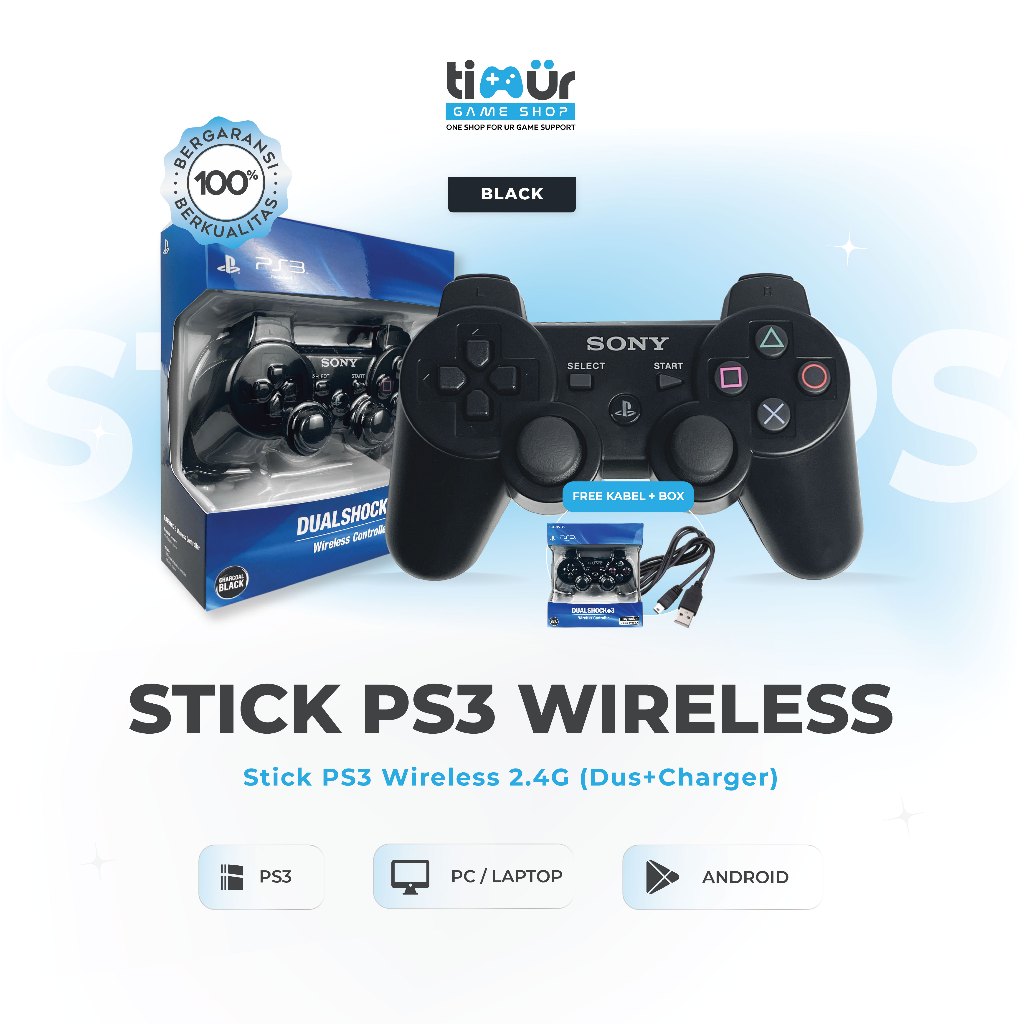 Stik Stick PS3 Wireless Ori Original Pabrik Warna Hitam + Charger USB