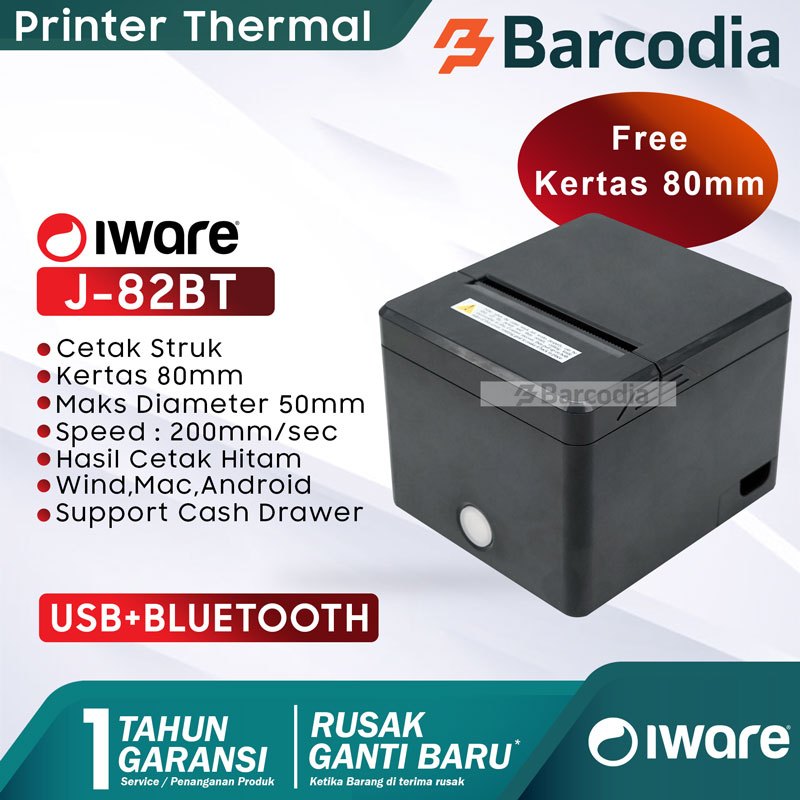 BARCODIA Printer Bluetooth 80mm Iware J82BT Bluetooth Usb AUTO CUTTER RJ11