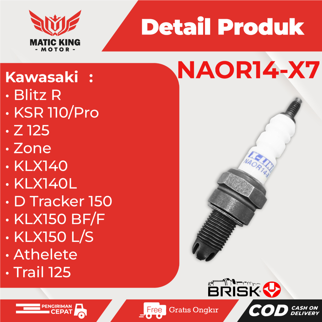 Brisk Busi Motor X-Line Racing Kawasaki KLX D Tracker Athlete Blitz R Zone Trail 110 125 150 NAOR14-X7