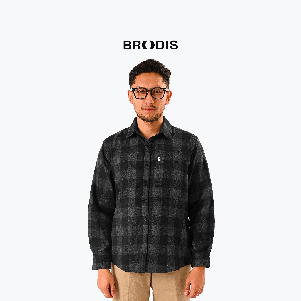 Broodis Kemeja Flannel Pria Lengan Panjang Grey Olten