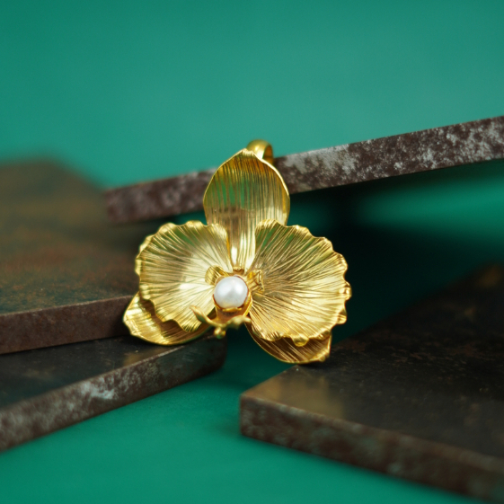 Bros Anggrek - Flora Nusantara | 24k gold-plated & 925 silver-plated| Handmade accessories