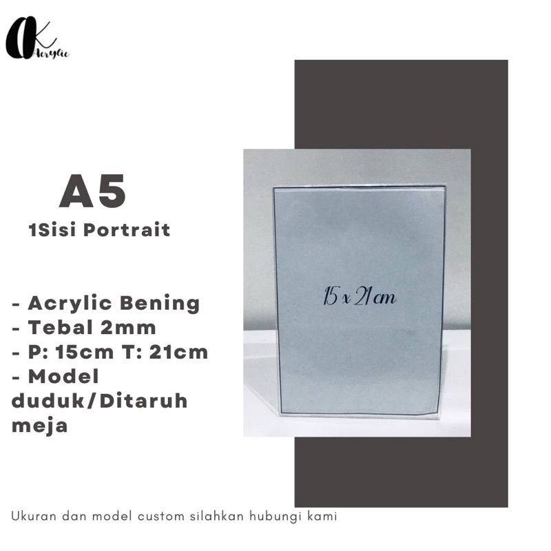 Brosur Display 1 Sisi Ukuran A5 Portrait/Tent Holder/Akrilik Display