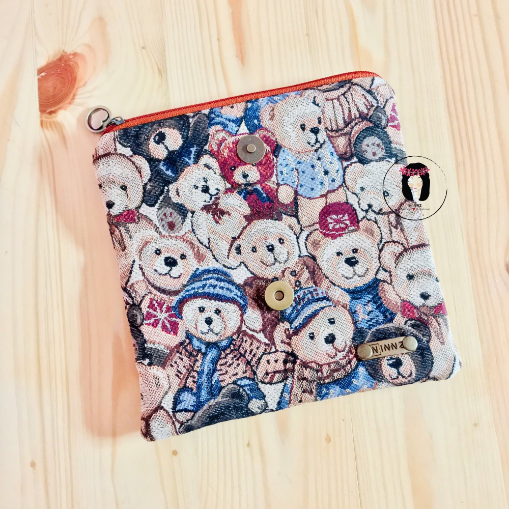 Brown Bear Foldover Woven Purse Dompet Lipat Tenun Dompet Wanita Pouch Tenun