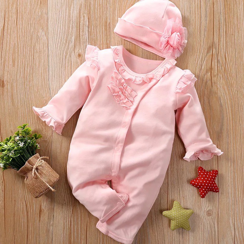 Brownieground Baju Bayi Perempuan 0-12 Bulan Pink & Putih Renda | Jumper Bayi Perempuan Baju Baby