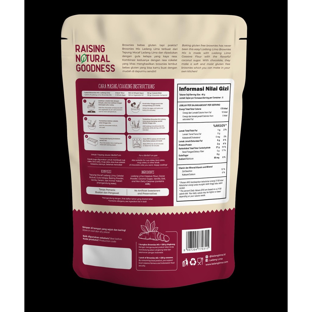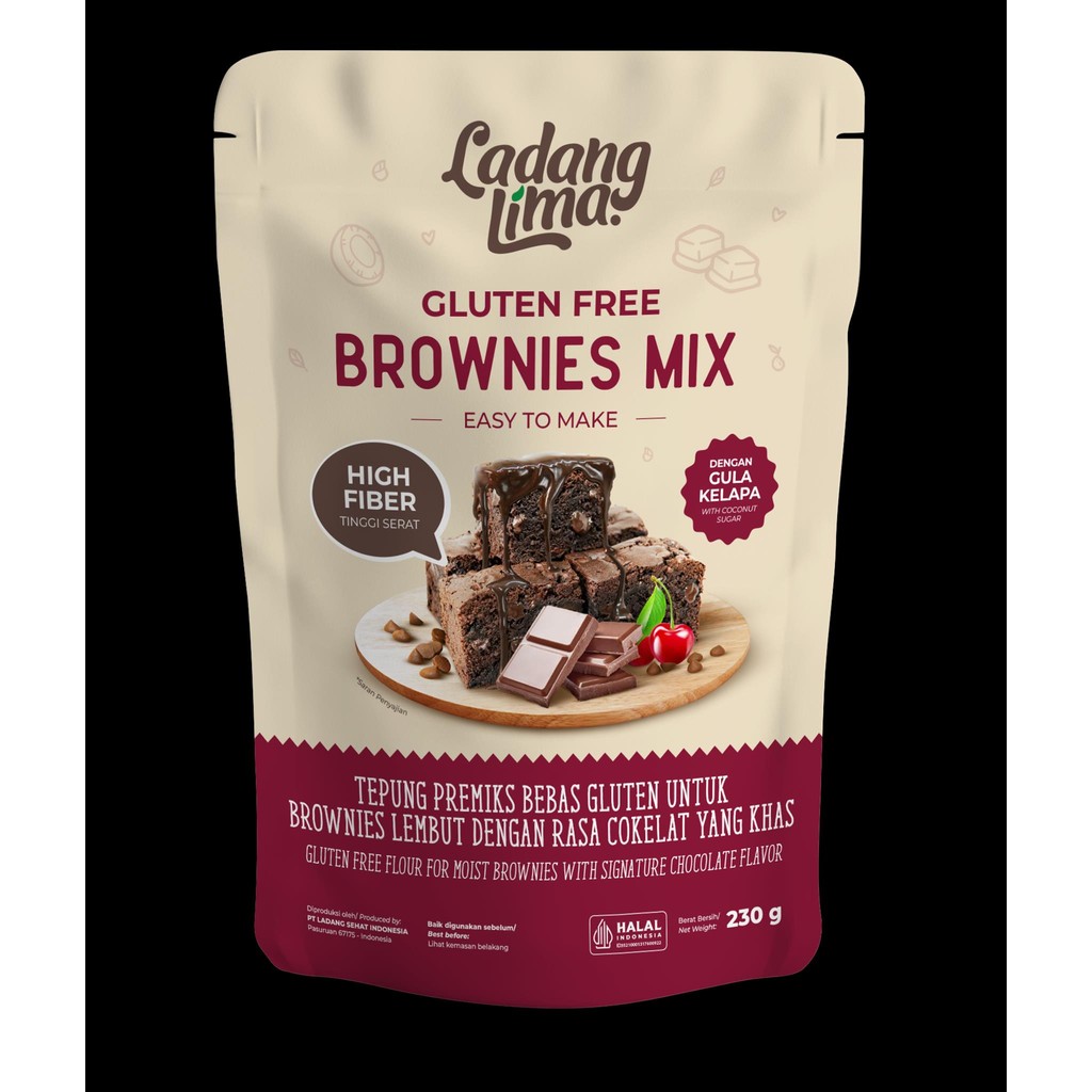 Brownies Mix Ladang Lima 230g - Tepung Brownis Instant Gluten Free ( Kue Cokelat Lava Cake Cupcake )