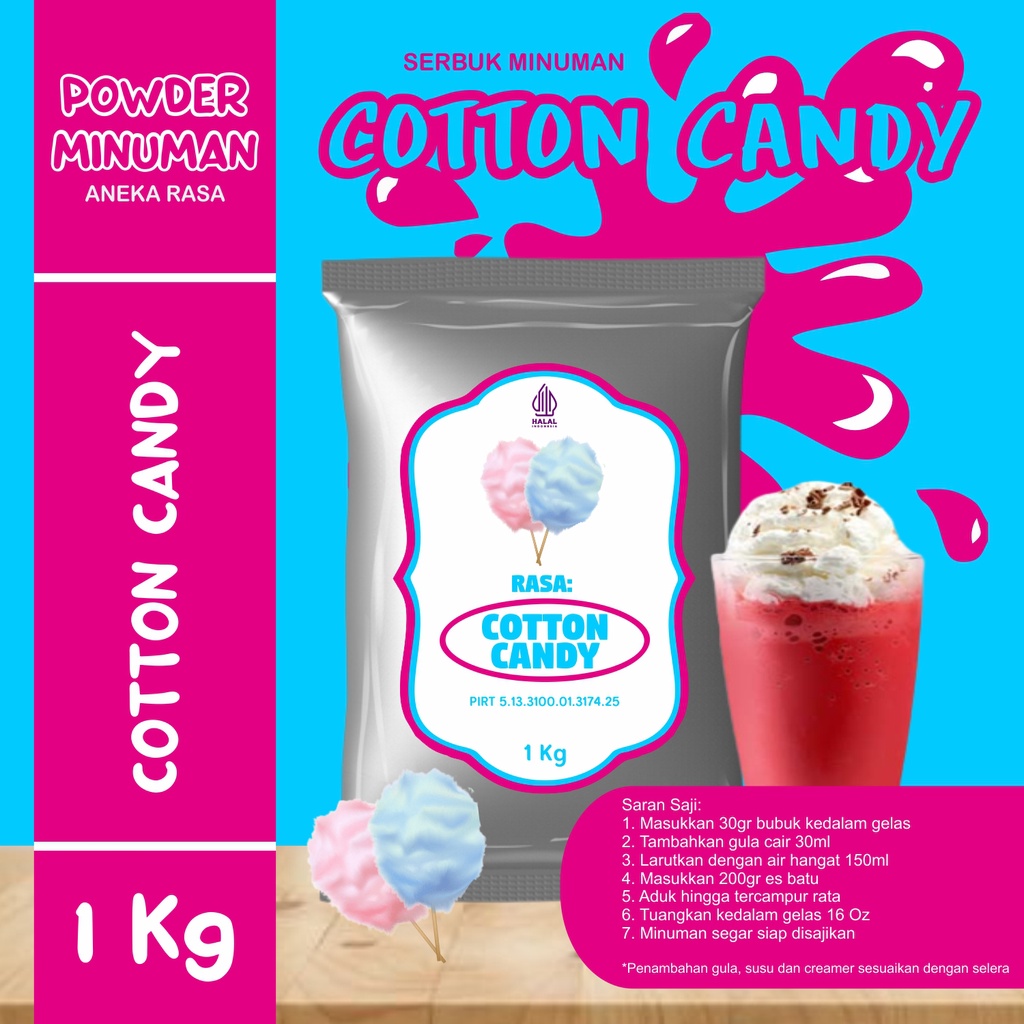 Bubuk Serbuk Minuman 1kg Rasa Kembang Gula Bubuk Minuman Kekinian Standar Instan Drink Cotton Candy Flavor Powder Boba Drink