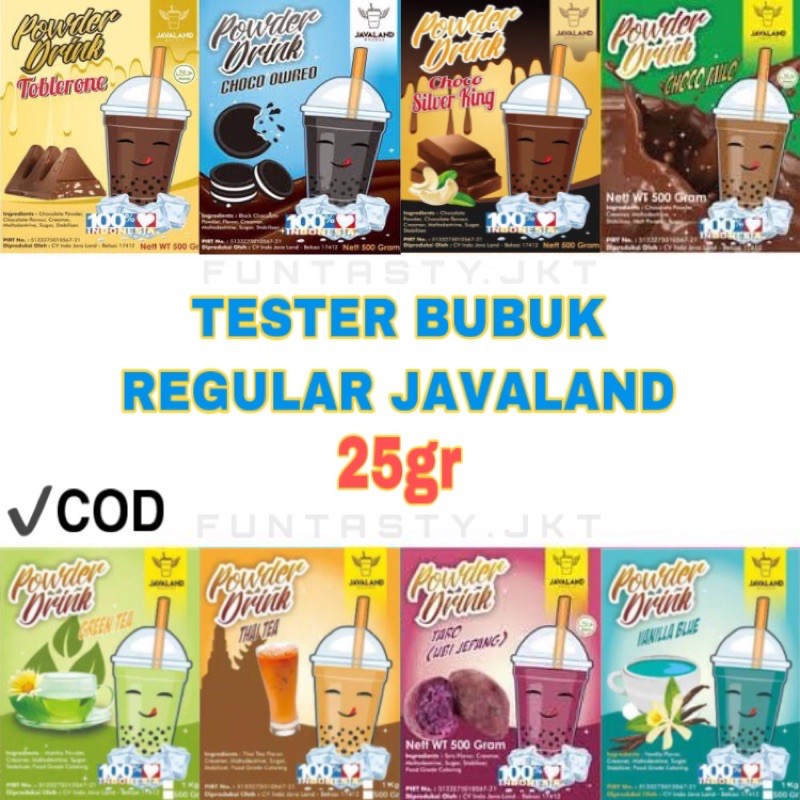 Bubuk minuman javaand powder drinks serbuk sachet es milo green tea thai cappucino boba capcin cafe jus tea susu blender shake 25gr