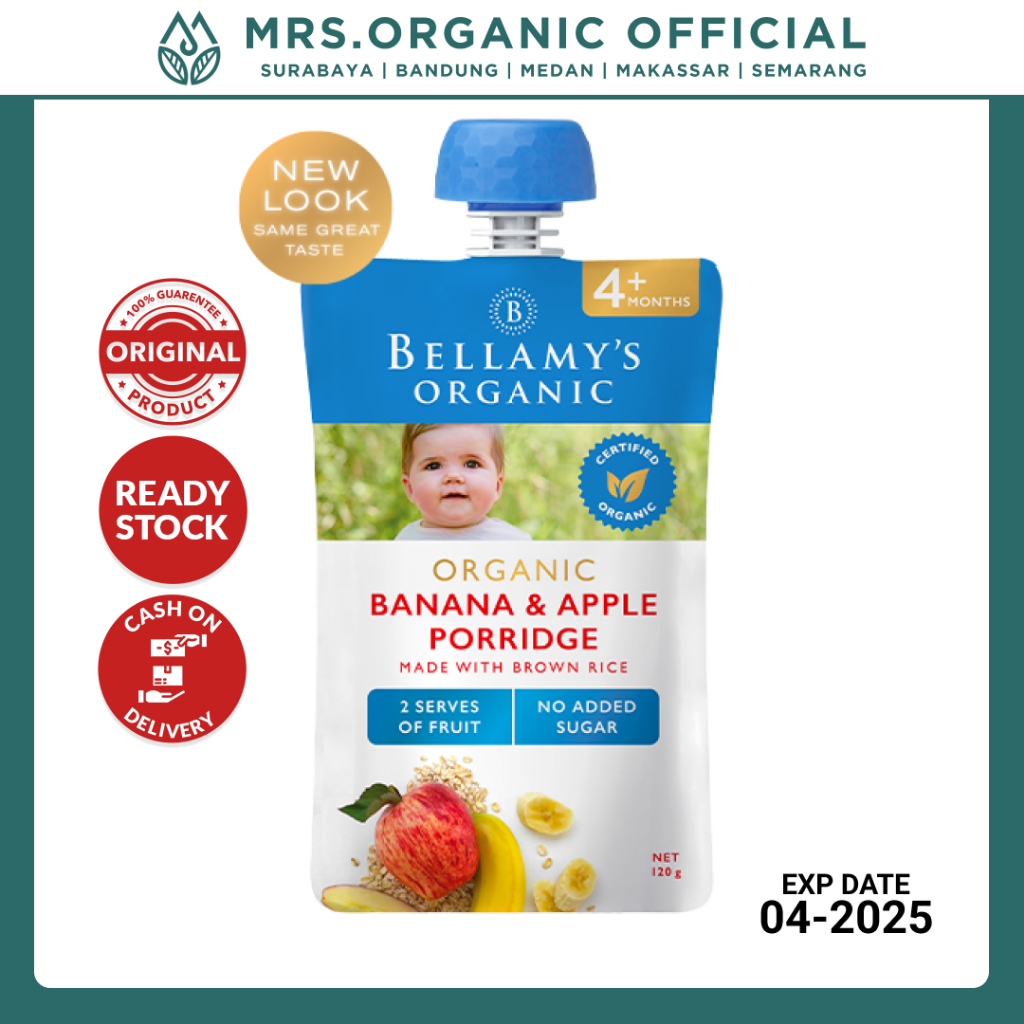 Bubur Bayi Siap Makan Organik 4+ Bulan Rasa Sayur Buah Blueberry Mango Apple Banana Oatmeal Pumpkin Sweet Potato Bellamys 120 Grm