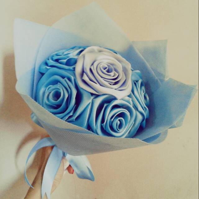 Bucket bunga satin model bulat mekar isi 6 bunga murah dan sangat berkualitas