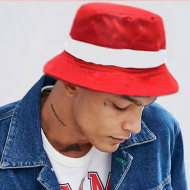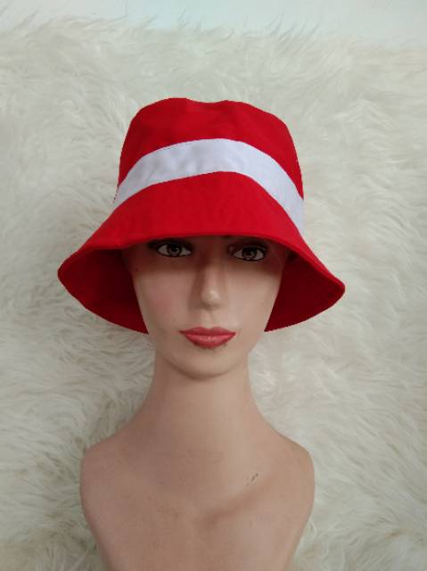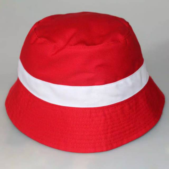 Bucket hat list merah putih/topi bulat