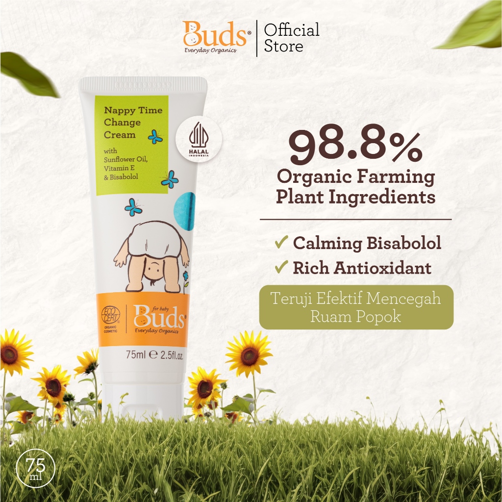 Buds Organics Nappy Time Change Cream - Lotion atau Krim Perawatan Ruam Popok Pantat Bayi dan Anak