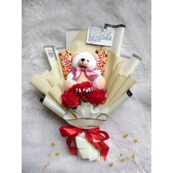 Buket Bunga Artificial & Boneka Cokelat Valentine Semarang Buket Valentine Murah Buket Boneka Wisuda, Bucket Valentine's Day, Buket Cokelat Silverqueen, Cadburry, Dairy Milk, Buket Ultah, Sidang, Wisuda Semarang Murah