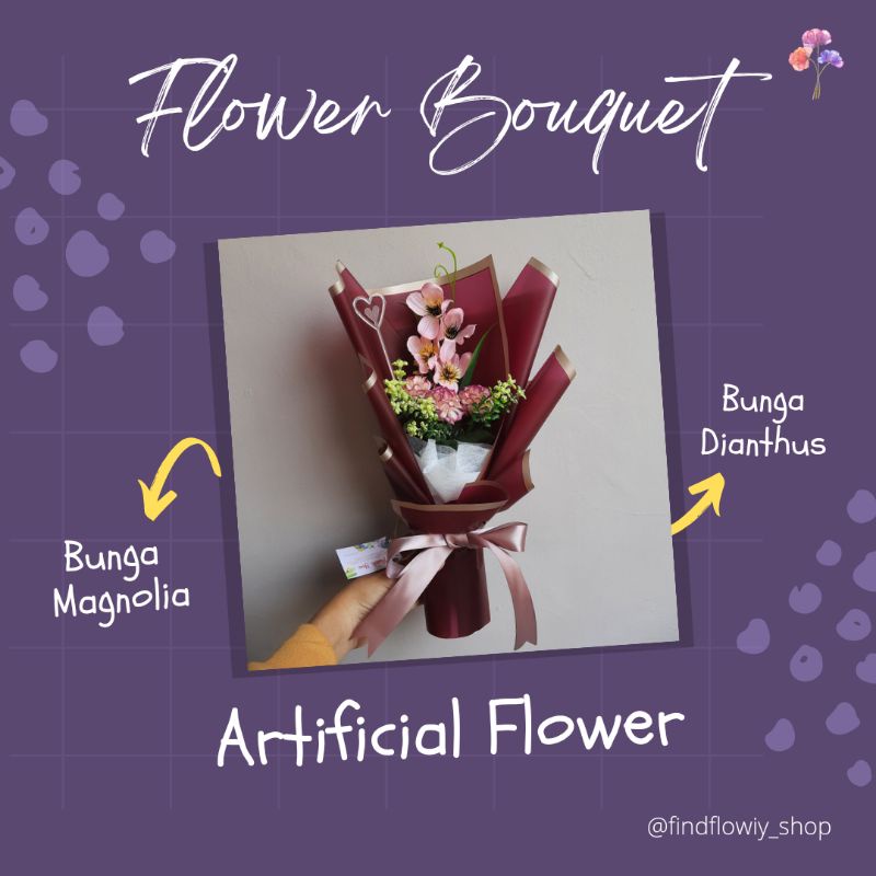 Buket Bunga Artificial - Bunga Magnolia & Dianthus