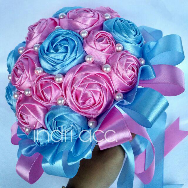 Buket Bunga Satin / Hand Bucket / Wedding - Pernikahan / Wisuda Handmade MURAH