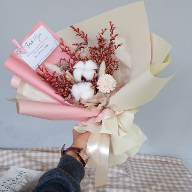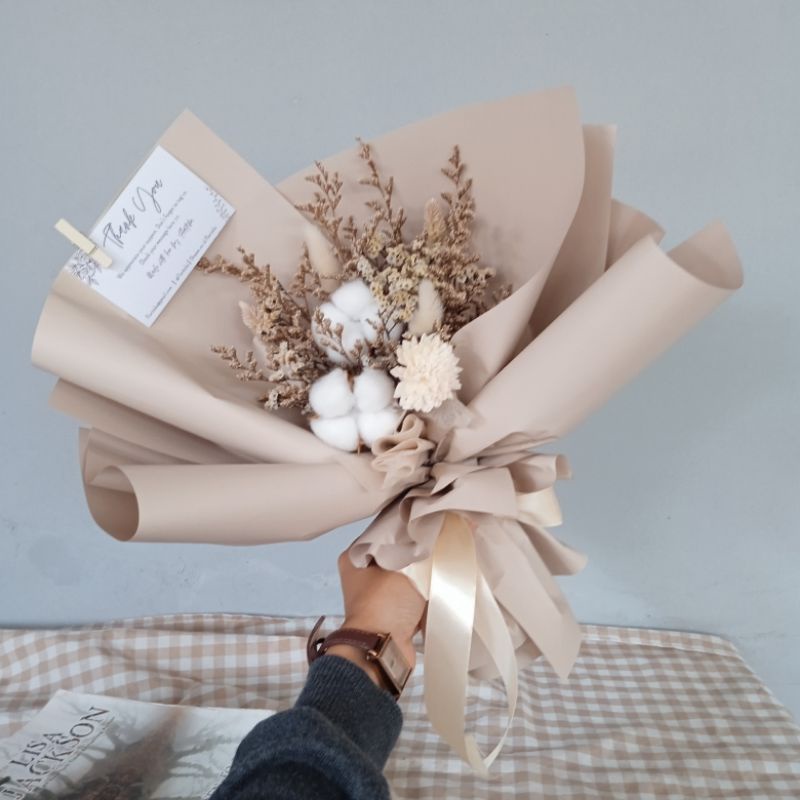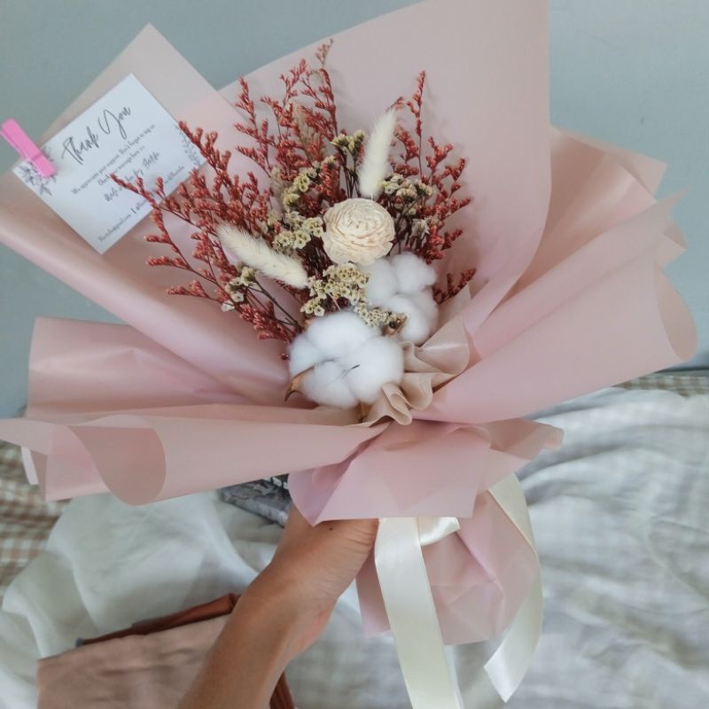 Buket Bunga Simpel Full Dried Flowers | Buket wisuda, Buket Sidang, Buket Sempro