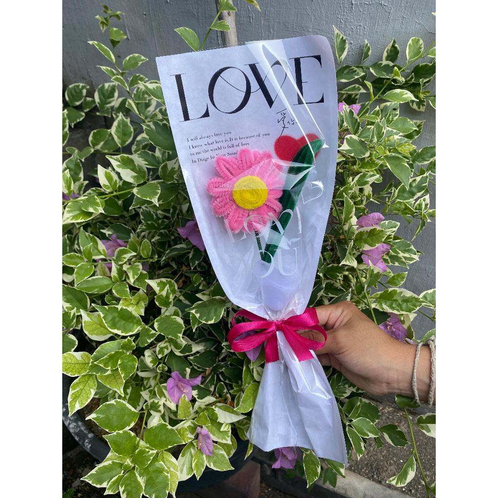 Buket Bunga Sun Flower | Single Buket Murah | Pipe Cleaner Sunflower Pot | Bunga Kawat Bulu | Hiasan Meja Aesthetic