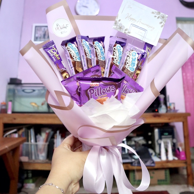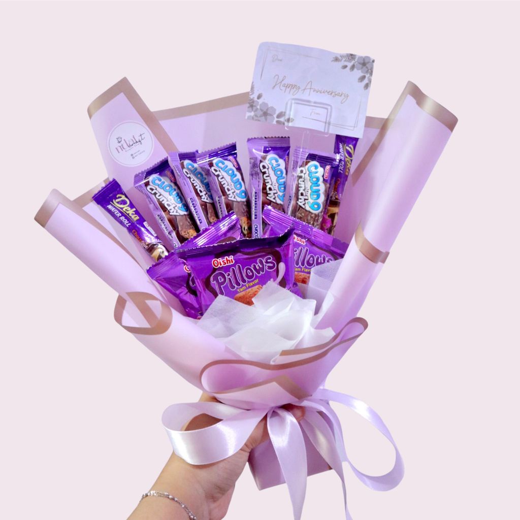 Buket Snack Ungu Lilac | Bucket Wisuda Serba Ungu Murah (Medium)