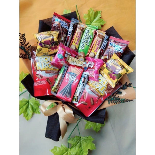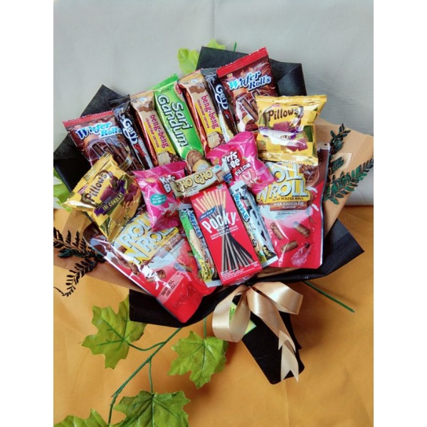 Buket pocky, buket mananan, buket snack wisuda, hadiah unik, bunga wisuda murah, snack wisuda