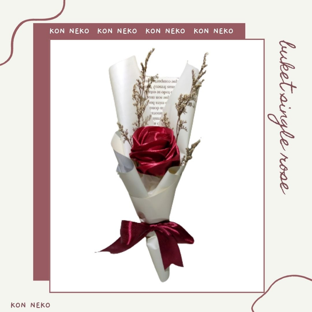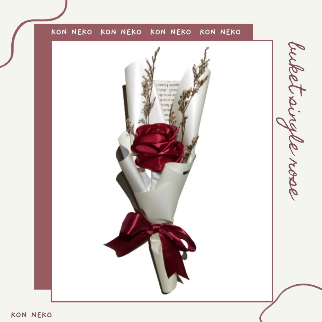 Buket single rose / buket bunga kecil / bukat kecil / buket mini bucket bunga/bucket wisuda/bunga pita/kado wisuda / buket bunga mawar / buket bunga satin