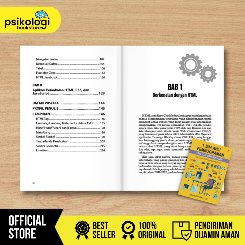 Buku 1 Jam Ahli Pemrograman HTML, CSS, dan JAVASCRIPT - Adam Saputra, S.Si. - Psikologi Bookstore