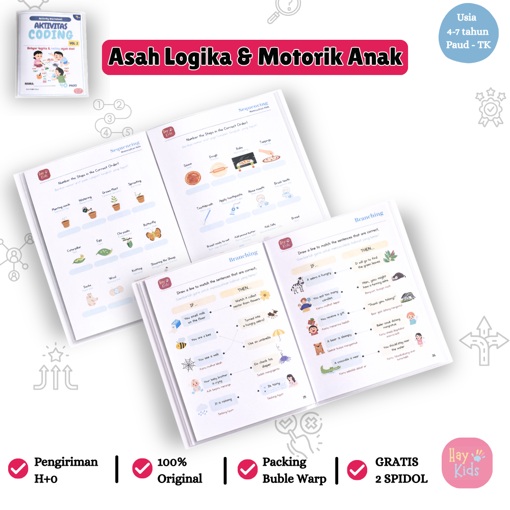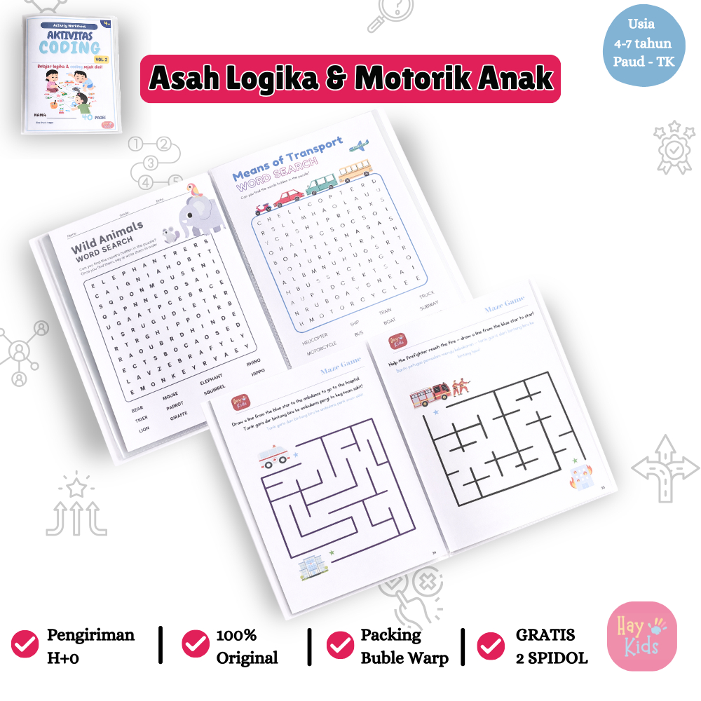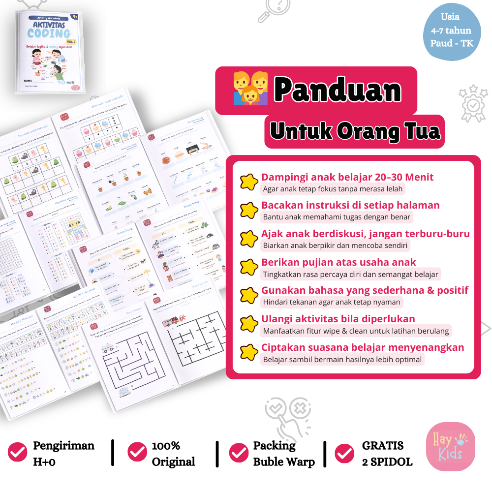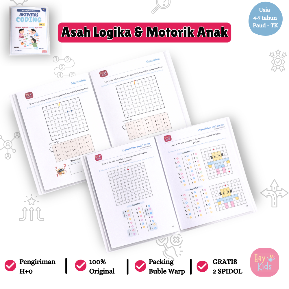 Buku Edukatif Aktivitas Coding Anak Logika dan Pola PAUD TK 4–7 Tahun Vol. 2 – Wipe & Clean