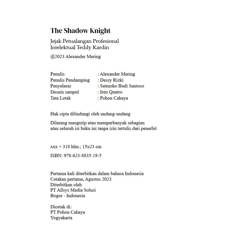 Buku Biografi Teddy Kardin: The Shadow Knight