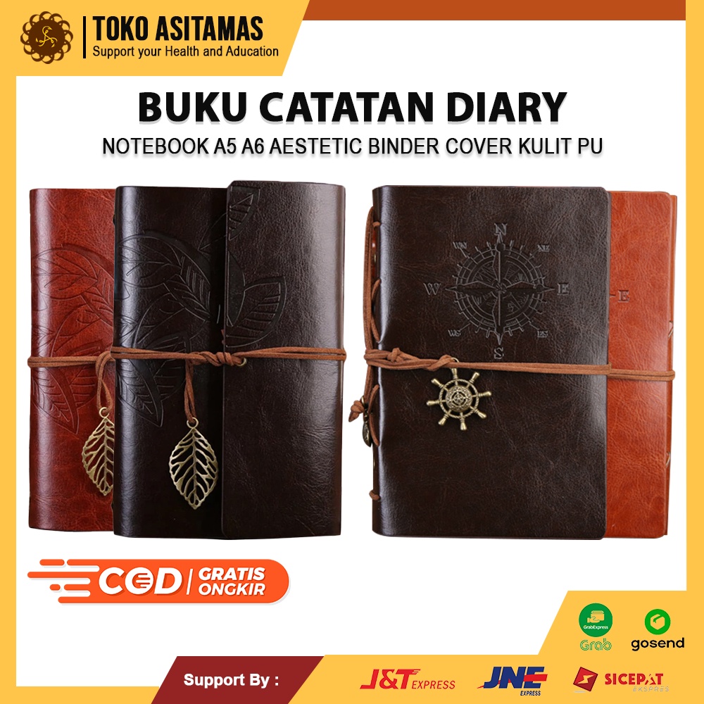Buku Catatan Diary Notebook Aestetic Binder Cover Kulit PU Leather Retro Agenda Gaya Vintage Retro