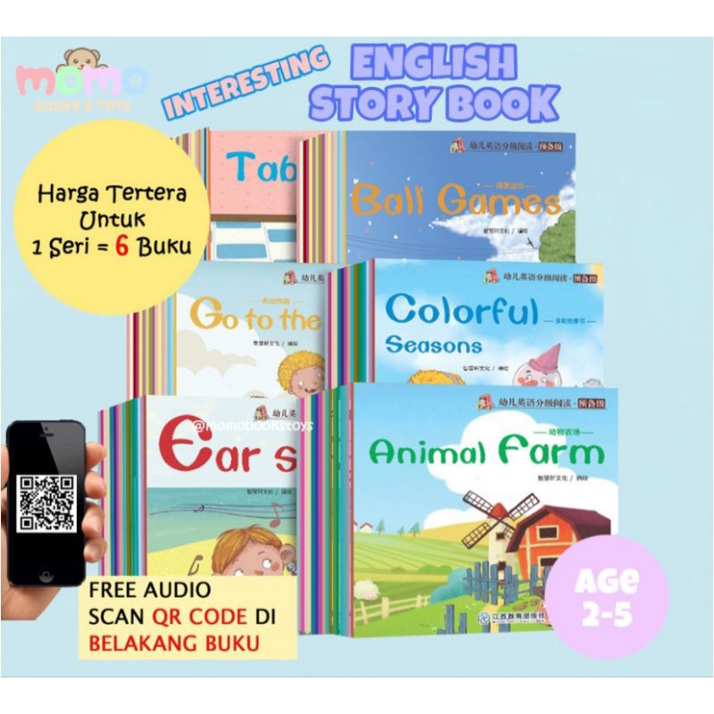 Buku Cerita Anak Bahasa Inggris isi 6 buku (Age 2-5, Scan QR CODE) | English Story Book Full Color / Buku Impor Bergambar Berwarna Anak TK SD / English for Children Kids Promo Murah