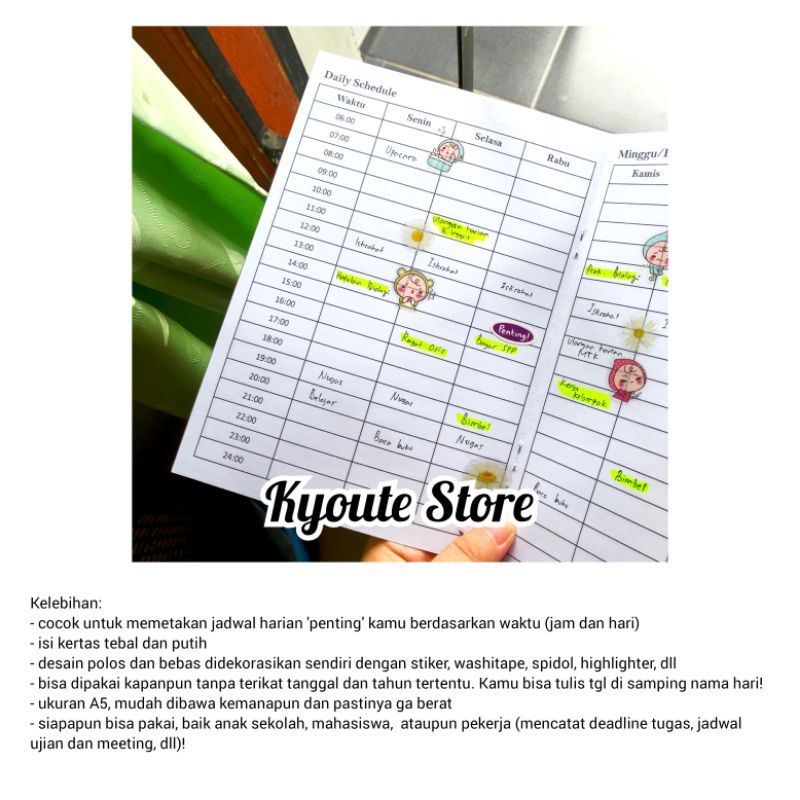 Buku Daily Schedule Book A5 Kyoute Catatan Perencanaan Agenda Kegiatan Harian Waktu Timeless Planner