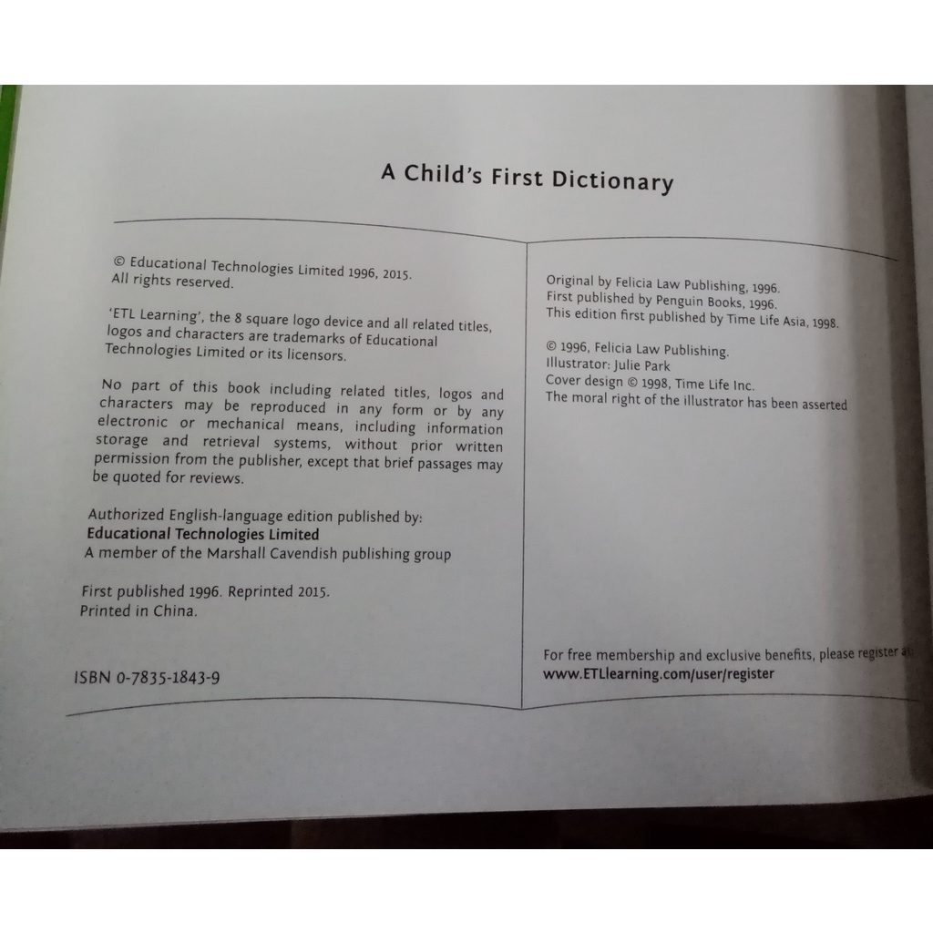 Buku Edukasi anak Child First Dictionary ETL Kamus bahasa Inggris Bergambar