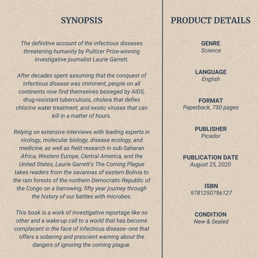 Buku Import The Coming Plague: Newly Emerging Diseases in a World Out of Balance by Laurie Garrett (Original Paperback)