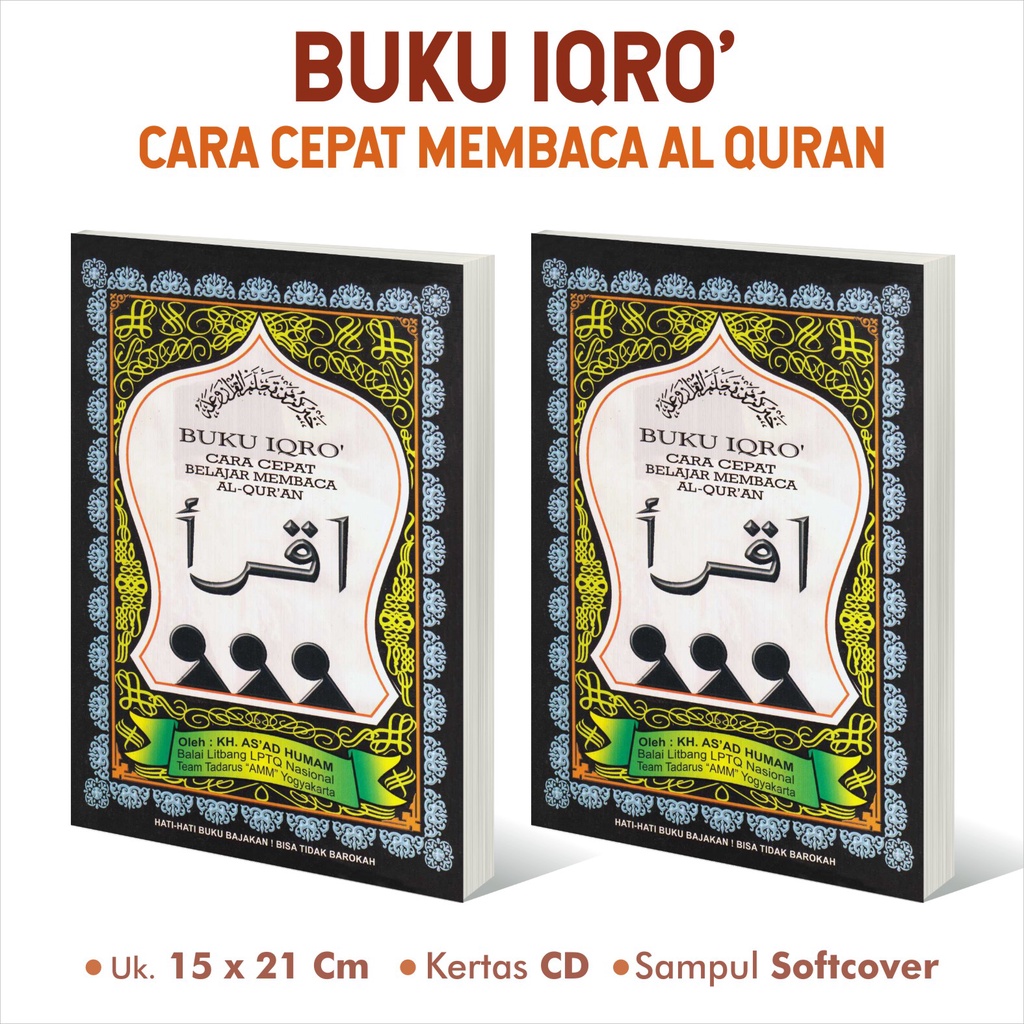 Buku Iqra Anak / Iqro anak / Cara Cepat Membaca Baca Quran Jilid 1 Sampai 6 HVS dan CD Buram AMM