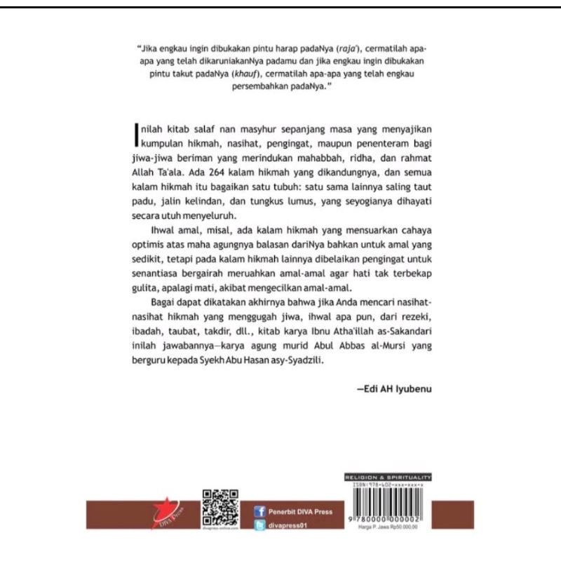 Buku Kitab Al-Hikam (Kitab Hikmah & Nasihat Jiwa Perindu Allah Taala) - Ibnu Atha'illah - DIVA Press