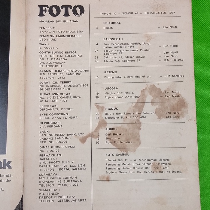 Buku Majalah Foto Indonesia 1977 / Majalah Antik Lawas Langka / Majalah Fotografi