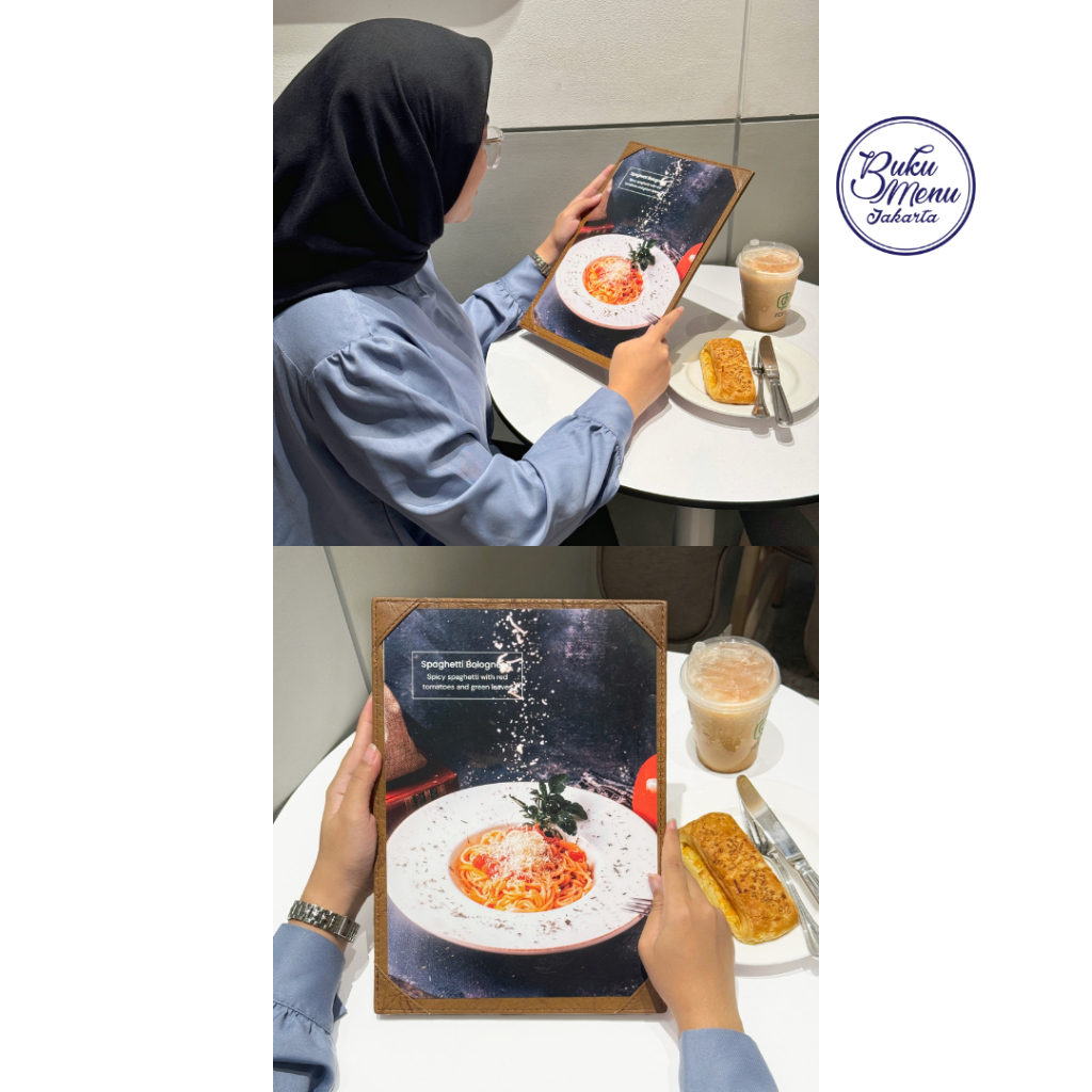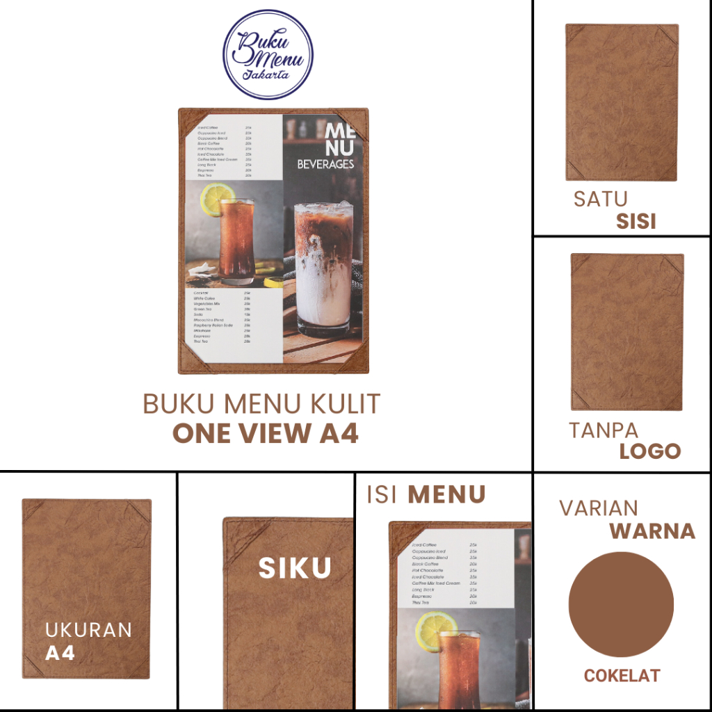 Buku Menu Jakarta - Buku Menu Kulit Cafe Series One View (1 sisi) A4 - Cafe, Coffee Shop, Restoran,