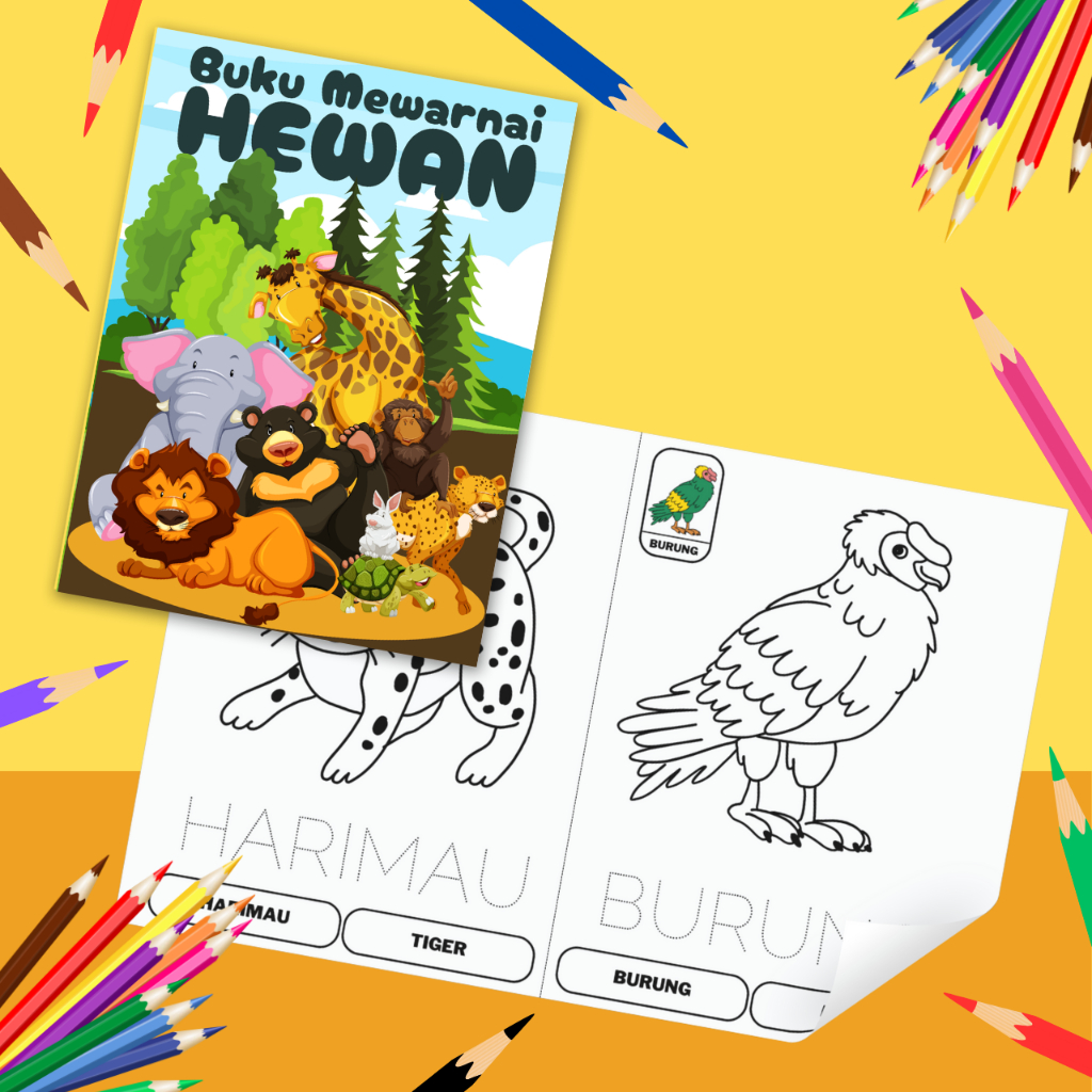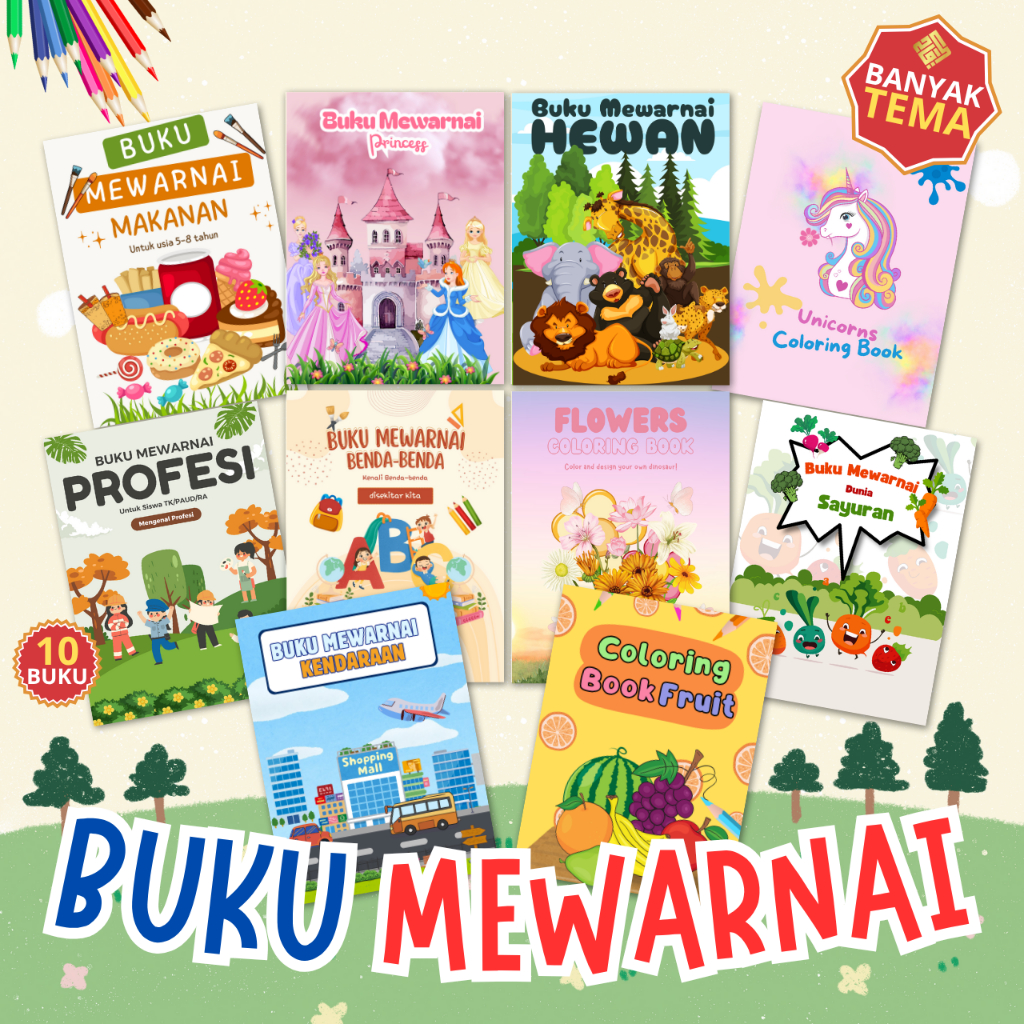 Buku Mewarnai Full Color A5 Paket Isi 10 Pcs Tema Random | Buku Mewarnai Anak PAUD TK SD Membaca Menulis