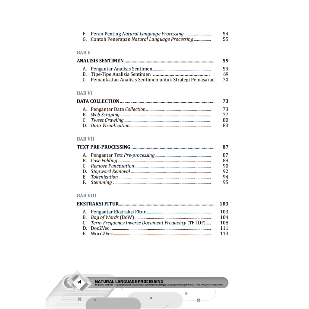 Buku Natural Language Processing: Eksplorasi Sentimen Masyarakat dalam Evaluasi Produk Lokal Indonesia Menggunakan Algoritma Bag of Words, TF-IDF, Word2Vec, dan Doc2Ve