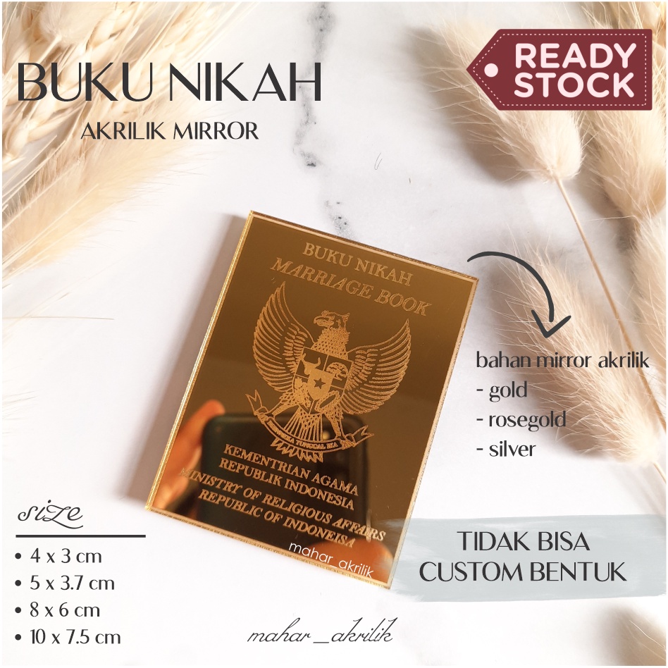 Buku Nikah Replika Akrilik Mirror | Miniatur Buku Nikah | Buku Nikah Hiasan Mahar