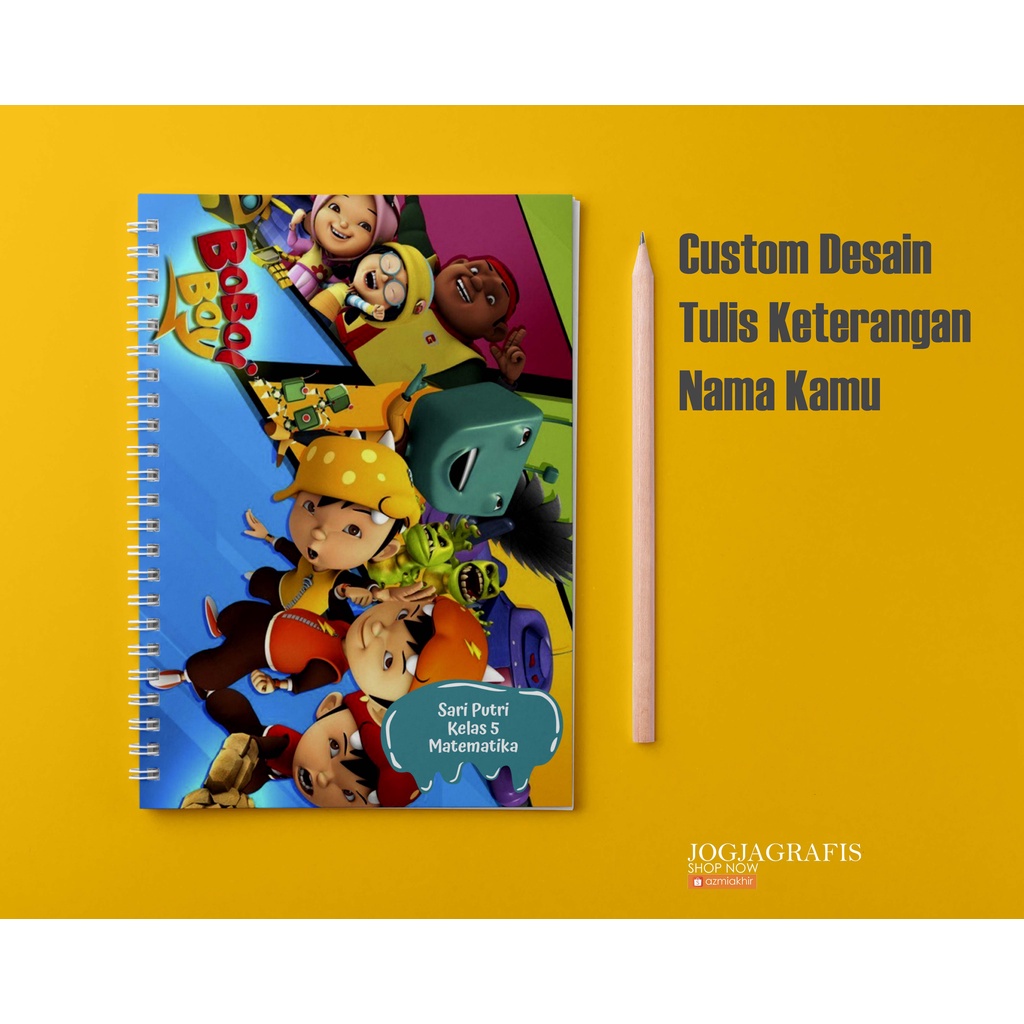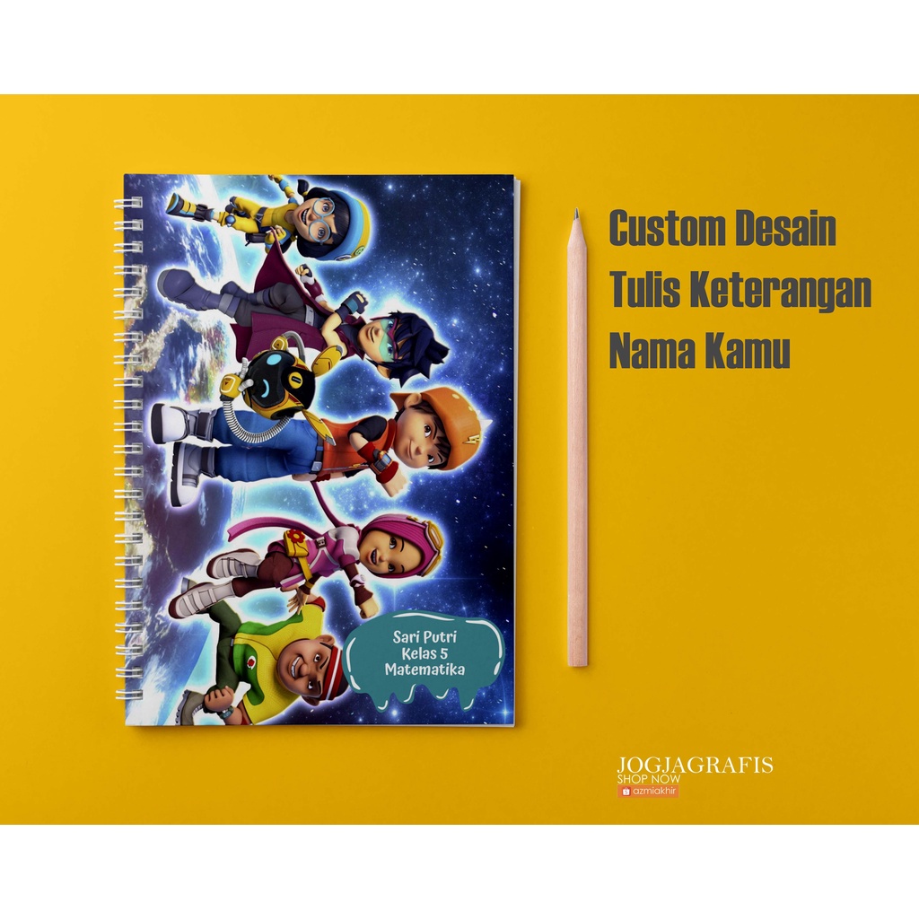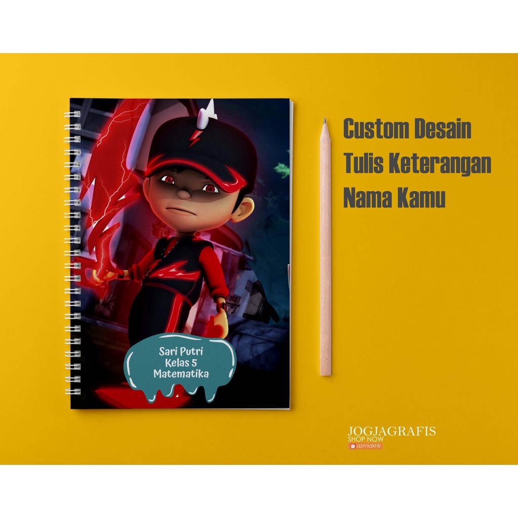 Buku Notebook Animasi Boboiboy A5 Custom Desain / BUKU TULIS CUSTOM / bloknot Spiral / Notebook Spiral