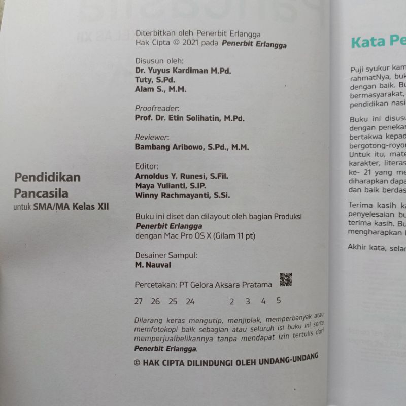 ( BUKU BEKAS ) ( ORIGINAL ) PKN PPKN Pendidikan Pancasila Kelas 12 XII 3 III SMA MA Penerbit Erlangga Kurikulum Merdeka - Yuyus Kardiman Dkk