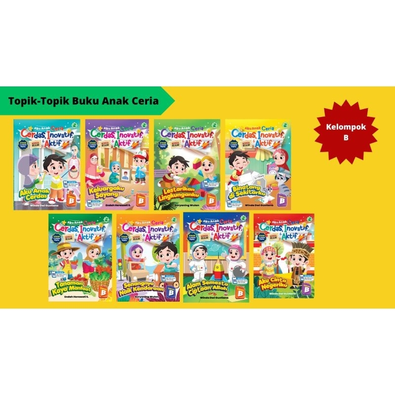 Buku Paket Aku Anak Ceria (Cerdas, Inovatif dan Aktif) Kurikulum Merdeka Belajar - 8 Buku Free Tas - Buku Paket Anak TK - PAUD