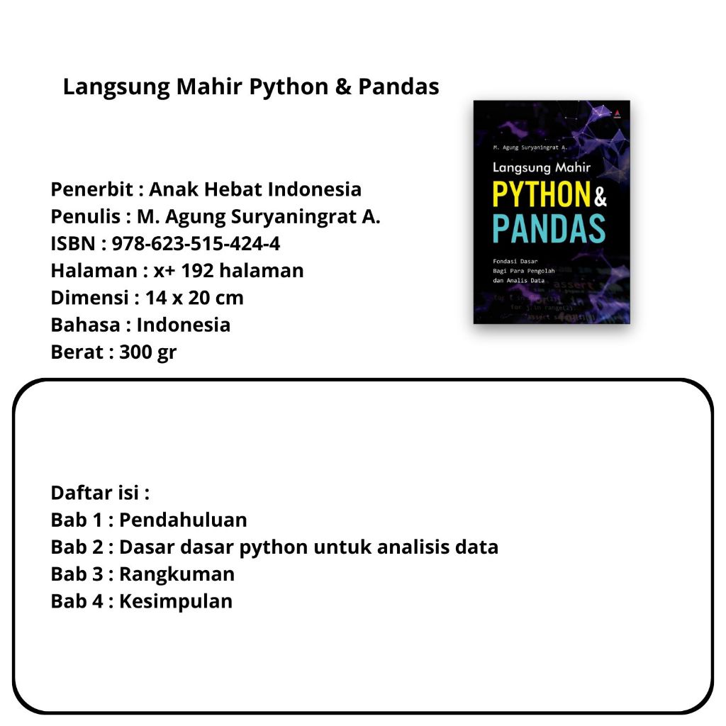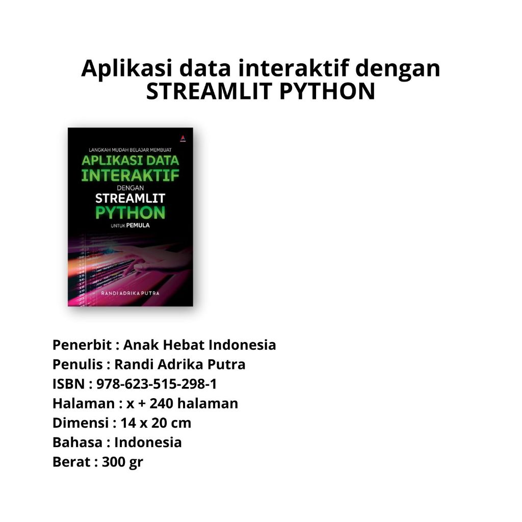 Buku Pemrograman : Logika & Algoritma Pemrograman,Python & Pandas,Teknik hacking dengan Python,Aplikasi Data Interaktif dengan STREAMLIT PYTHON, Pemrograman Web,dengan HTML, CSS, JAVASCRIPT, PHP dan MARIADB - Anak Hebat Indonesia