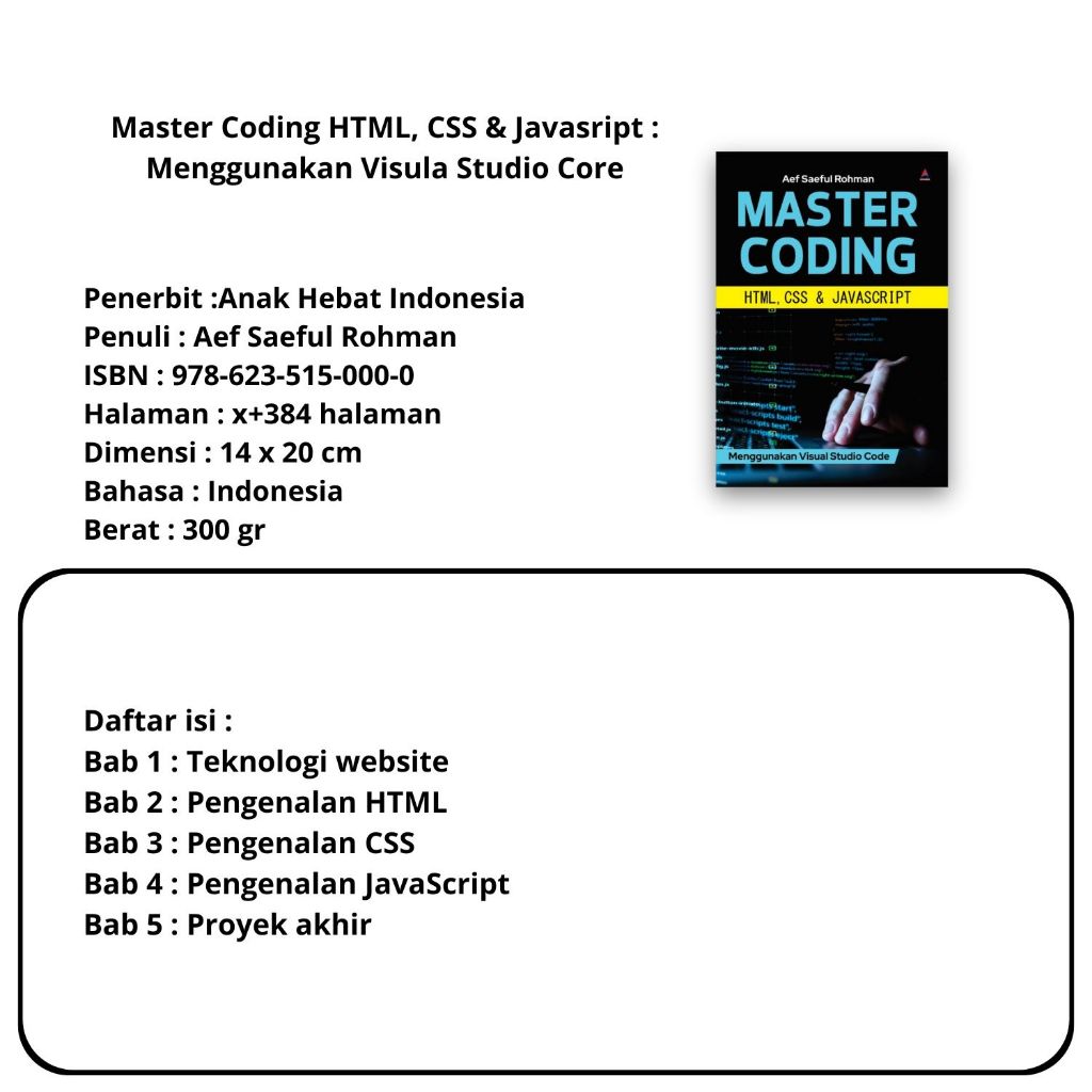 Buku Pemrograman : Machine Learning,Analisis Data Dengan Python,HTML, PHP & MYSQL,Master Coding HTML, CSS & Javasript,Pemrograman WEB: HTML, CSS, PHP, MySQL & Javascript,Pemrograman Python