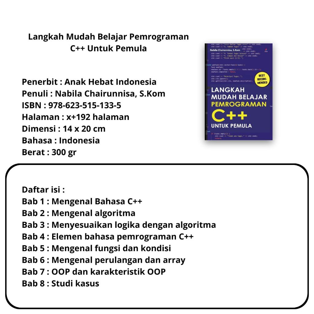Buku Pemrograman : Dasar-Dasar Algoritma, Struktur Data, Data Pemrograman,Pemrograman C++,Pemrograman PHPPemrograman WEB, - Anak Hebat Indonesia