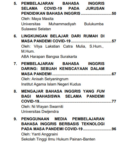 Buku Pengalaman Pembelajaran Bahasa Inggris Daring di Perguruan Tinggi - Ori Penerbit