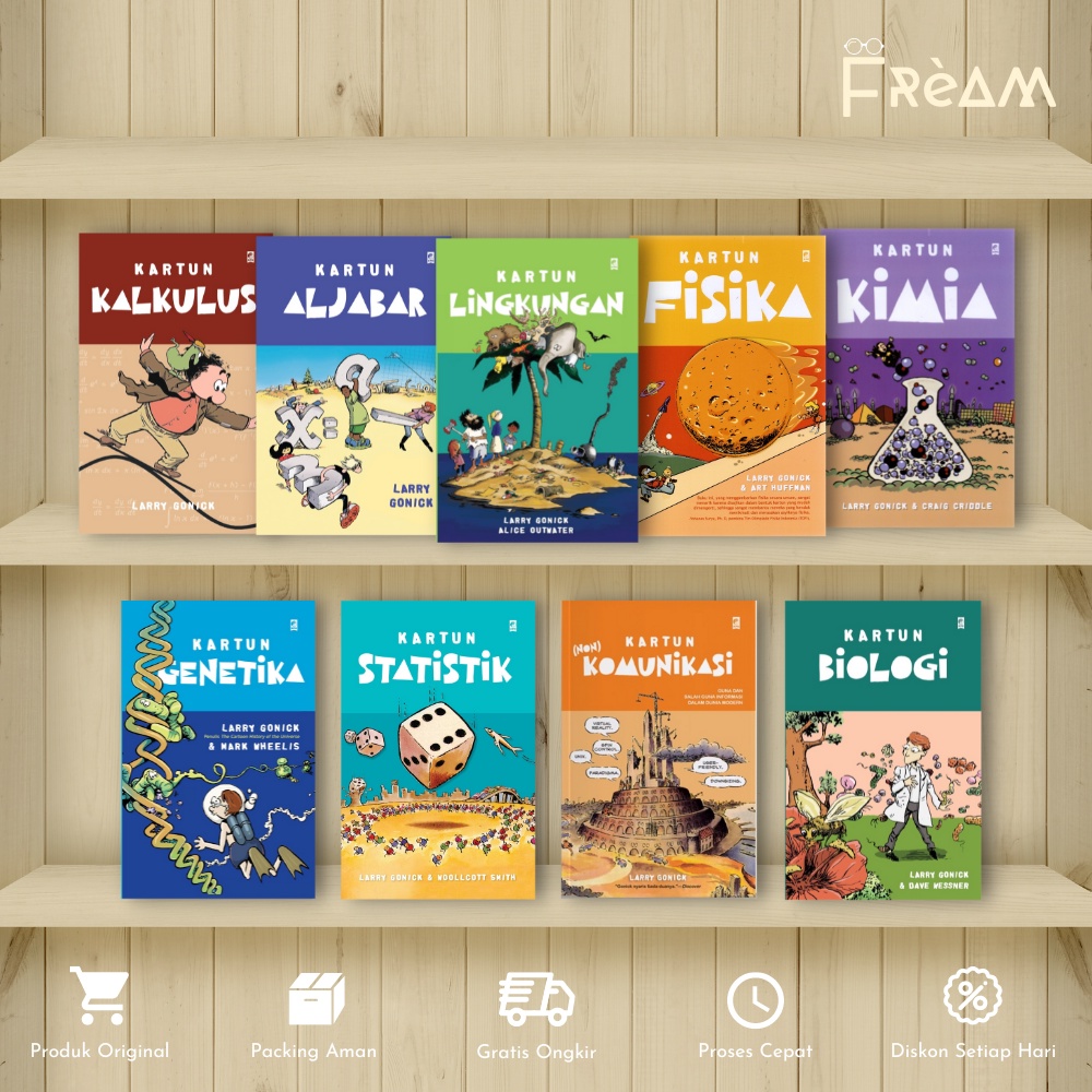 Buku Sains Kartun Kalkulus | Kartun Aljabar | Kartun Lingkungan | Kartun Fisika | Kartun Kimia | Kartun Genetika | Kartun Statistik | Kartun (Non) Komunikasi | Kartun Biologi by Larry Gonick