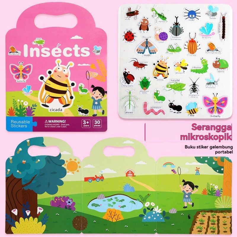 Buku Stiker Reusable / Sticker Activity Book / Mainan Edukasi Anak Buku Keterampilan Kreativitas Prakarya Aktivitas Menempel with Reusable Waterproof Stickers for Kids