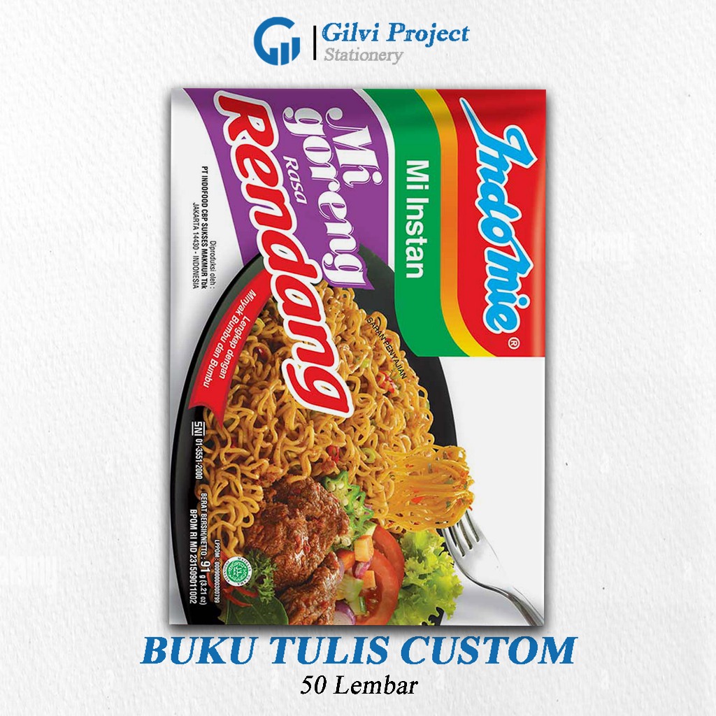 Buku Tulis Sekolah Custom Tema INDOMIE Bergaris 50 Lembar 1 Pak Isi 4 Buku/ Buku Tulis Anime/ Buku Aesthetic/ Buku Catatan