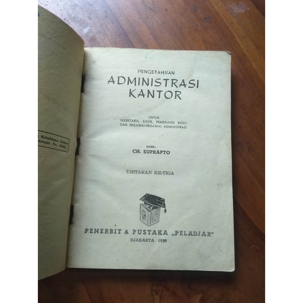 Buku jadul 1953 Pengetahuan ADMINISTRASI KANTOR.by CH Suprapto