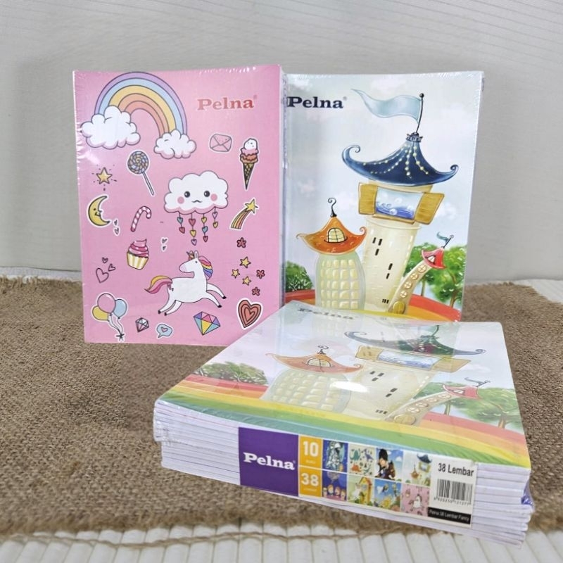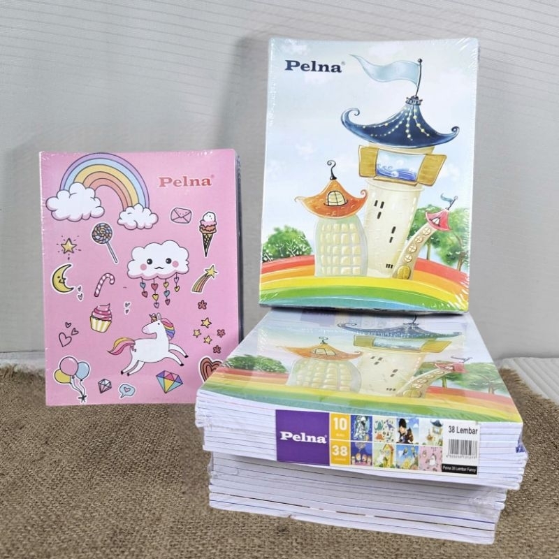 Buku tulis 38 lembar 10 buku merek pelna ukuran buku tulis biasa/kwarto